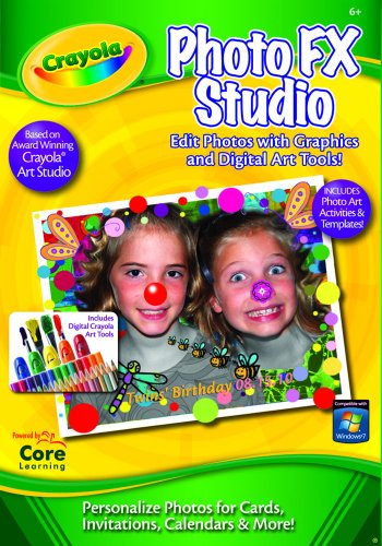 Crayola Photo FX, Crayola PhotoFX Studio, for kids aged 5 to 10, provides easy to use tools to edit digital photographs and add fun special effects including coloring, lightening, darkening, sharpening, and smearing. Hundreds of art images and templates to customize photos or create greeting cards, invitations, planners, calendars, and more!